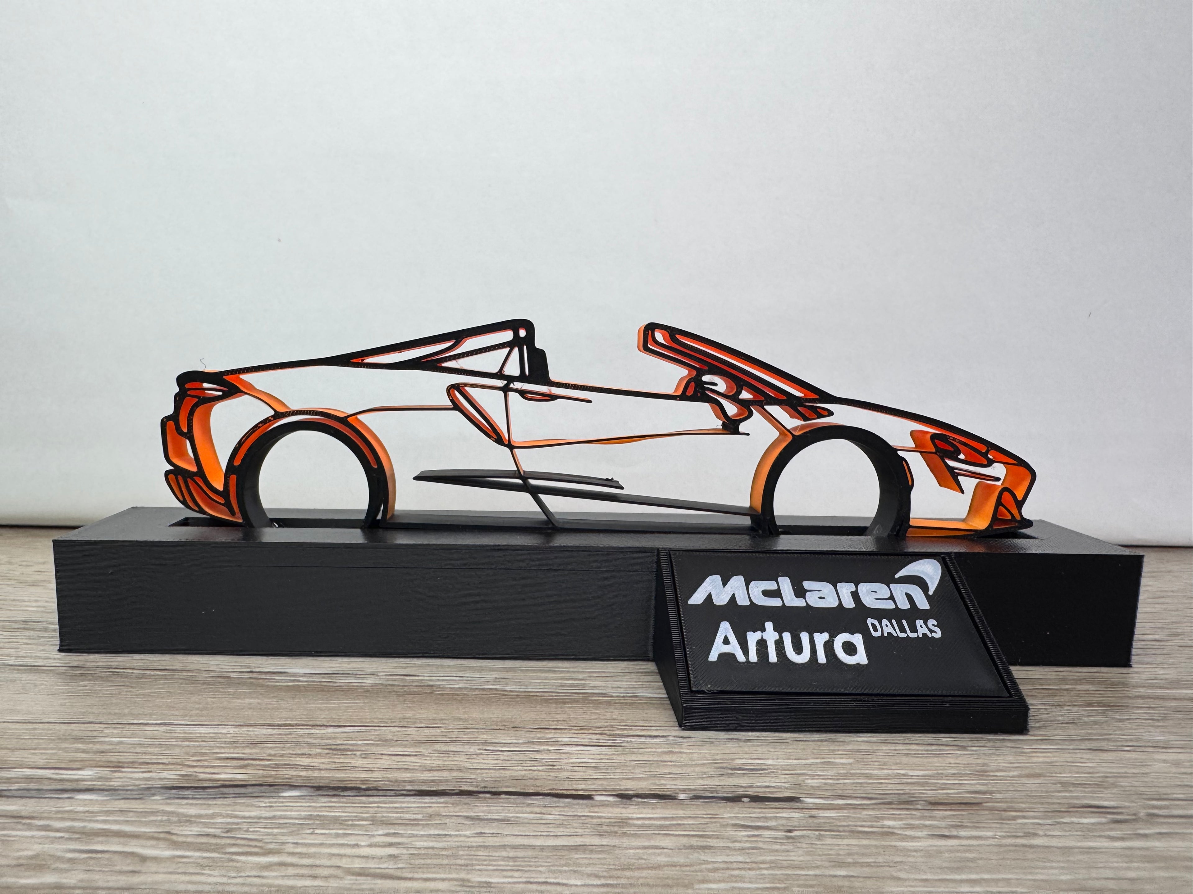 Since then, I’ve added more models, improved the printing setup, and stayed focused on solid design and clean presentation. Everything is currently made fully in-house — from the design work to production — so I can keep quality consistent across every piece. I’m currently working with McLaren of Dallas as well, producing custom pieces for their dealership alongside my regular lineup.